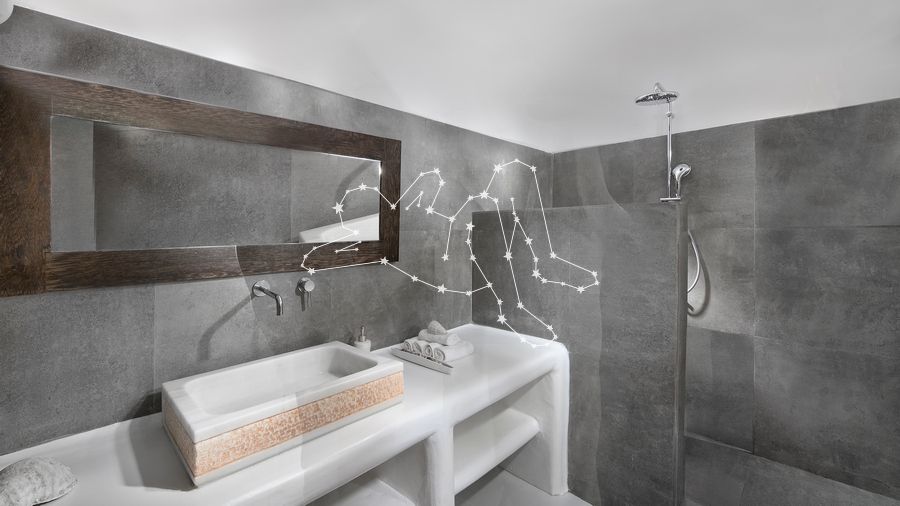 Οι εξωτερικοί χώροι περιλαμβάνουν κοινόχρηστη πισίνα υπερχείλισης, δεύτερη μικρότερη πισίνα και τζακούζι 5 ατόμων.