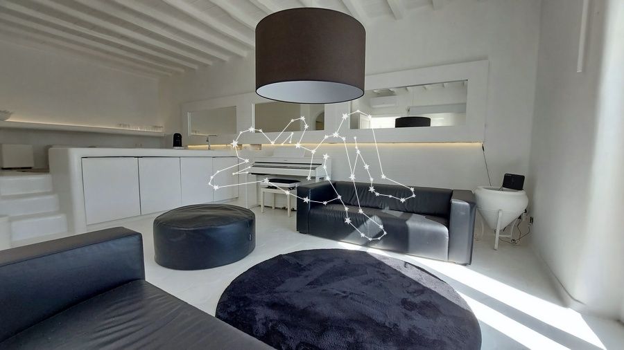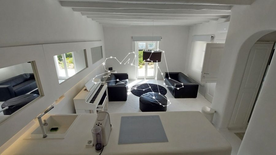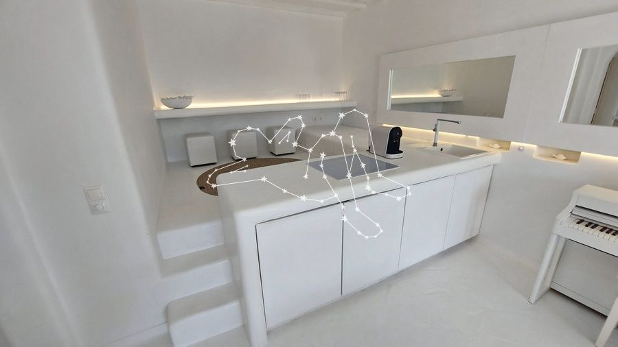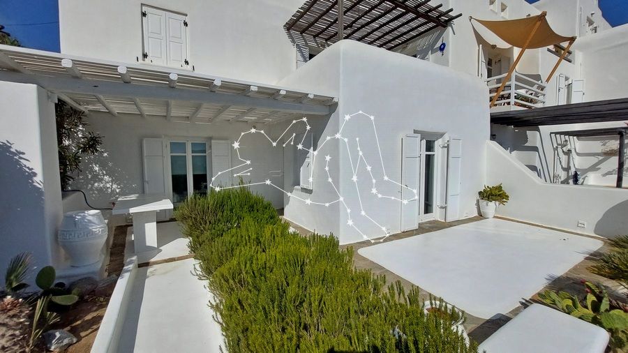 Συνδυάζοντας τη μοντέρνα κομψότητα με τον κυκλαδίτικο χαρακτήρα, αυτή η σύγχρονη κατοικία διαθέτει ευρύχωρο σαλόνι, σε ανοιχτή διάταξη με τη νησίδα της κουζίνας και το υπερυψωμένο επίπεδο που περιλαμβάνει καναπέ-κρεβάτι και χώρο εργασίας. Το φωτεινό υπνοδωμάτιο με κρεβάτι king-size και το άνετο μπάνιο, συμπληρώνουν τη διάταξη των εσωτερικών χώρων.